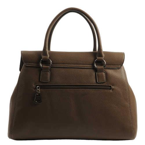Modieuze handtas van het merk Boo!Deze handtas in de kleur Taupe is voorzien van: - Overslag met draaisluiting - Hoofdvak met afsluitende rits - Tussenschot - Ritsvak - Twee opbergvakken - Ritsvak aan de achterzijde - Spiegeltje