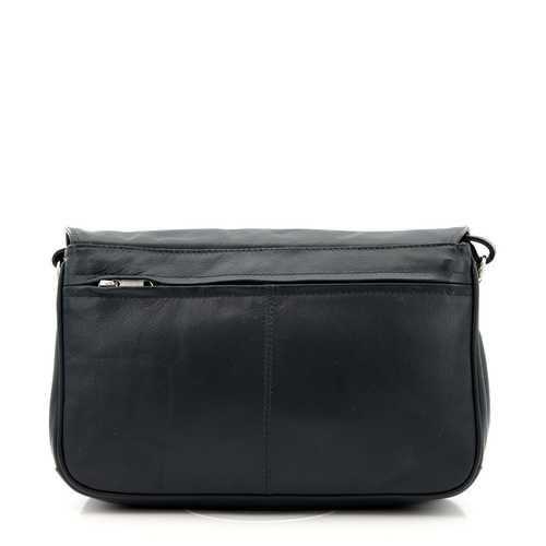 Tijdloze lederen schoudertas. Onder de overslag zitten verschillende vakken, ook vakken die afgesloten worden met een ritssluiting. De schouderband is verstelbaar, zodat de tas gedragen kan worden op iedere lengte die U maar wilt.